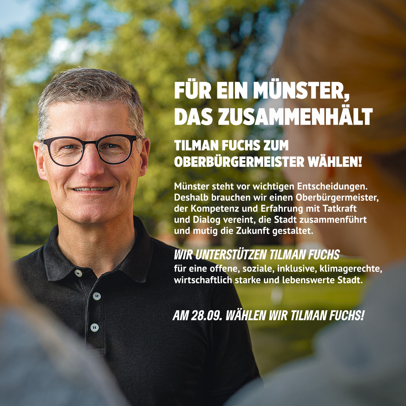 Als gebürtiger Münsteraner liegt mir unsere Stadt besonders am Herzen. Ich möchte dafür sorgen, dass Münster wieder rund läuft und die Verwaltung effizient funktioniert:
