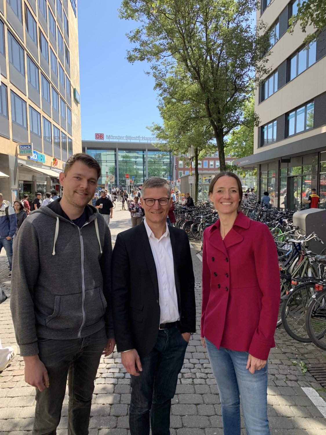 Als Oberbürgermeisterkandidat stehe ich für ein noch mobileres Münster. Allein, weil eine Ausweitung des Straßenraums rein praktisch kaum möglich ist, verfolgen wir das Ziel einer Umverteilung des Straßenraums zugunsten von Fuß-, Rad- und Busverkehr, vor allem auch um unsere Klimaziele zu erreichen und die Lebensqualität aller Bürger*innen zu verbessern. Außerdem stellen wir uns dem Zielkonflikt zwischen dem Schutz der Fläche vor Versiegelung auf der einen Seite und dem Bedarf an Fläche auf der anderen Seite. Wir werden die Weichen stellen für ein Miteinander verschiedenster Interessen und Bedürfnisse mit klugen Entwicklungskonzepten, Bebauungsplänen und städtebaulichen Verträgen, sodass flächensparend genug Platz für alle wichtigen Bedürfnisse da ist: Wohnen, Arbeiten, Freizeit, Landwirtschaft und Natur.